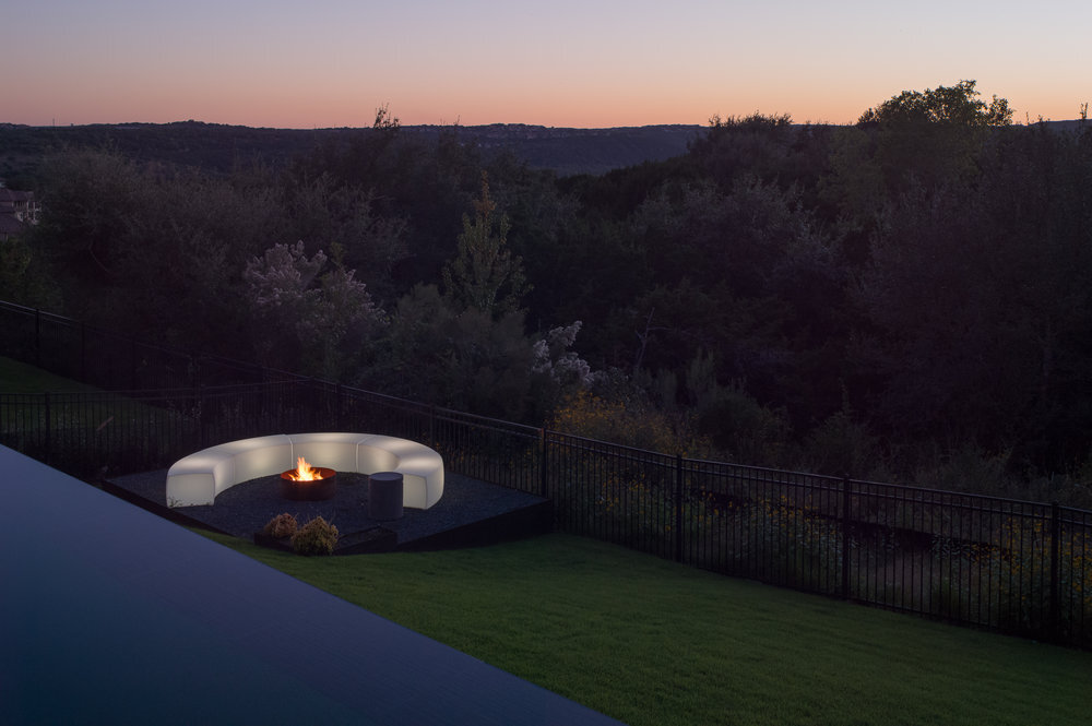 Outdoor living, hardscape, and swimming pool designed and constructed by modern pools